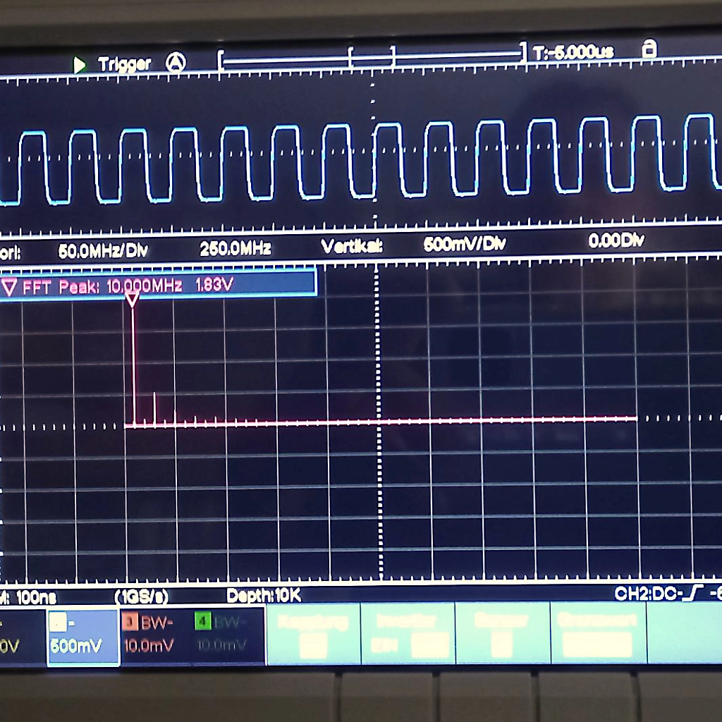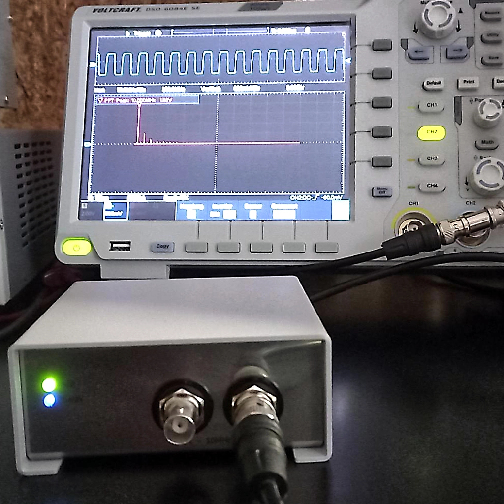 - Signalformung: 10MHz Rechteck, 2Vpp / 50:50 Tastverhältnis