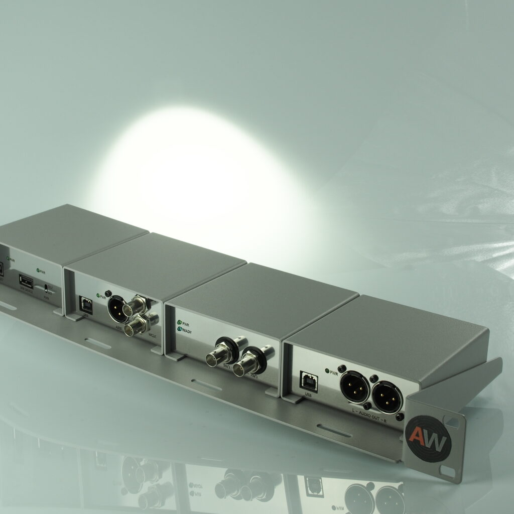 Die Rackwanne von AUDIOWERKZEUG ist speziell für die einfache Rackmontage aller AUDIOWERKZEUG-Produkte konzipiert. Mit einem Format von 19 Zoll und einer Höheneinheit (1HE) entspricht sie den Standards DIN 41494 / IEC 60297. Die Wanne ermöglicht die Montage von bis zu vier AUDIOWERKZEUG-Interfaces wie CoDI, DiGI, STEREO2MidSide, 10MHz4Reference, Isolator4USB, USB2DAC, USB2ADC und USB2AES3/AES. Auch die beiden Netzgeräte POWER4six und POWER4analog zur Stromversorgung der Module von AUDIOWERKZEUG-Geräten lassen sich hier integrieren.