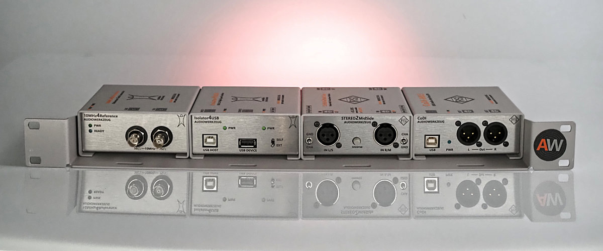 Mit sechs verschiedenen Produkten ging AUDIOWERKZEUG vor 10 Jahren an den Start. Darunter verschiedene DI-Boxen, Computer-Interfaces und DI-Box-Kombinationen.